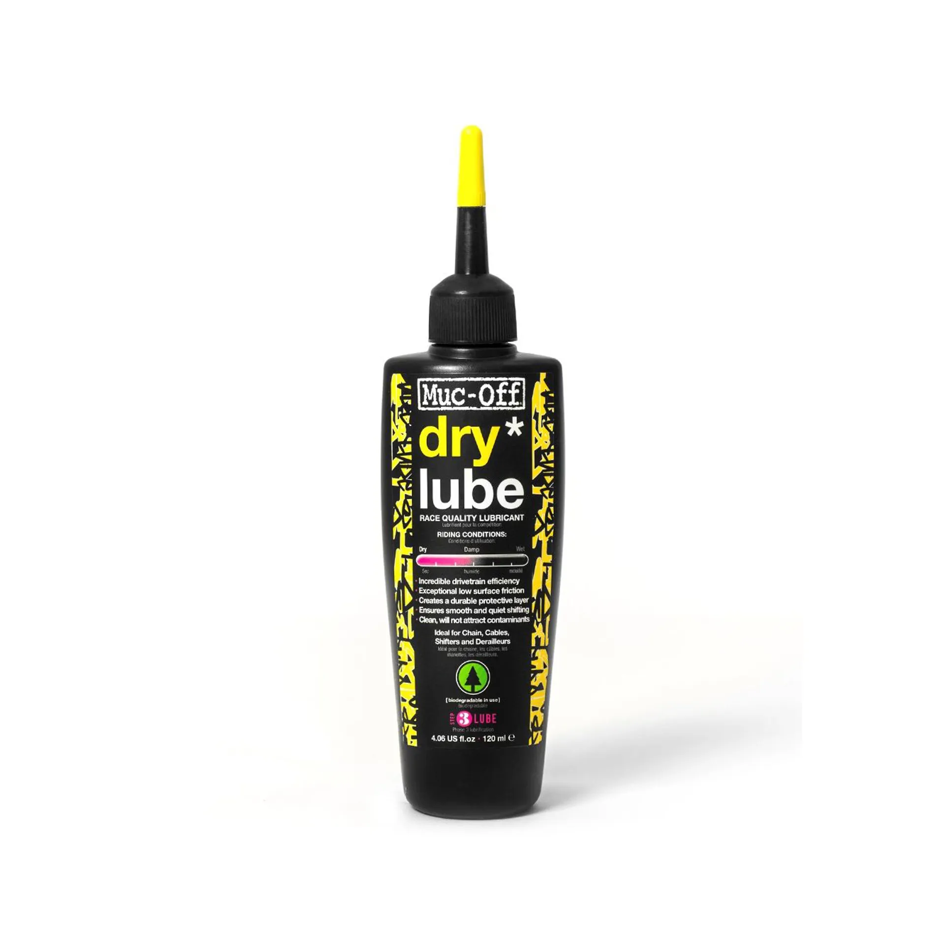 Muc-Off Dry Chain Lube is a durable, deep penetrating Chain Lubricant and oil that’s formulated to hold up in extreme conditions that would destroy ordinary chain lubes.